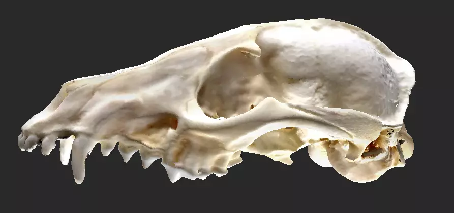 Mesh and Texture: The scan provides a detailed and accurate representation of the fox cranium, with high-quality textures capturing surface details.
