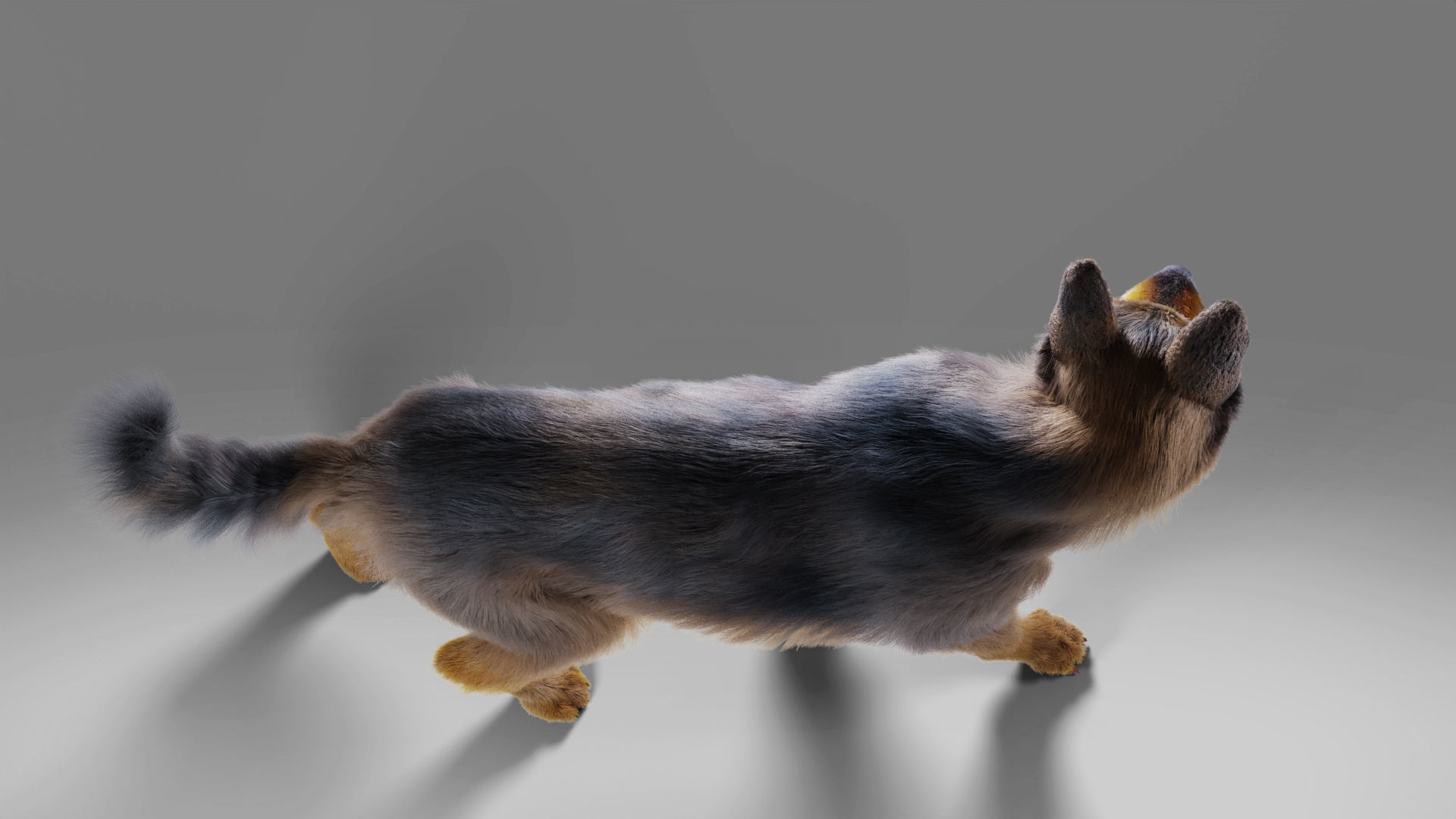 German Shepherd model, including 4K map,rigging and fur, made with Blenderin the real-world scale and rendered by Cycles renderer.