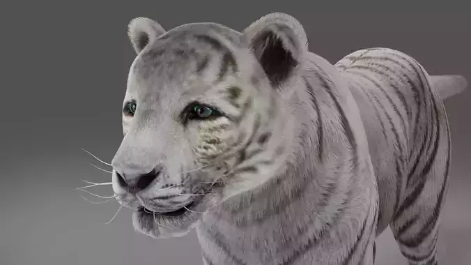 Fur White Tiger NO Rigged in Blender Low-poly 3D model
