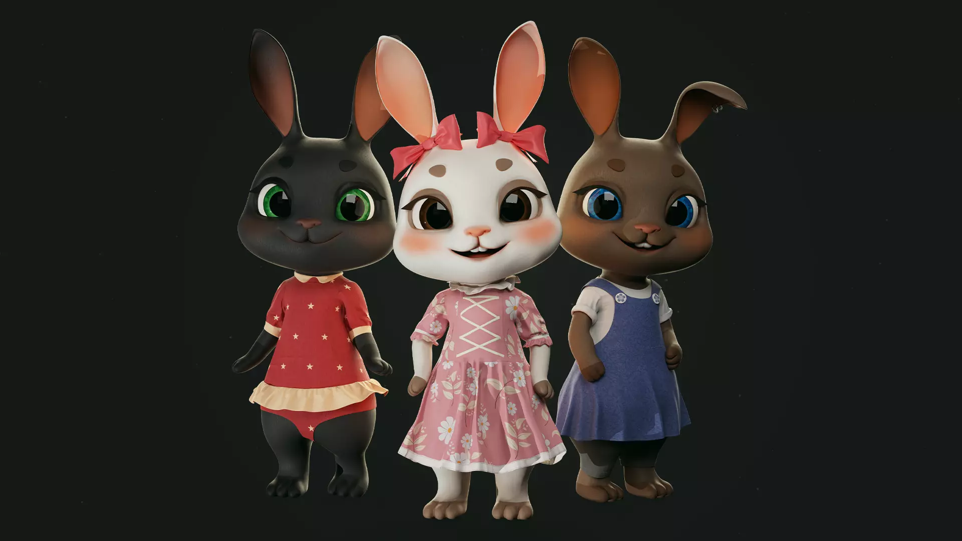 8 Texture sets: BODY, EYES, OVERALLS, SHORTS, T_SHIRT, BODYSUIT, BOW, DRESS.