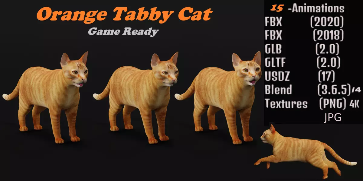 Ginger Tabby Cat Low-poly 3D model