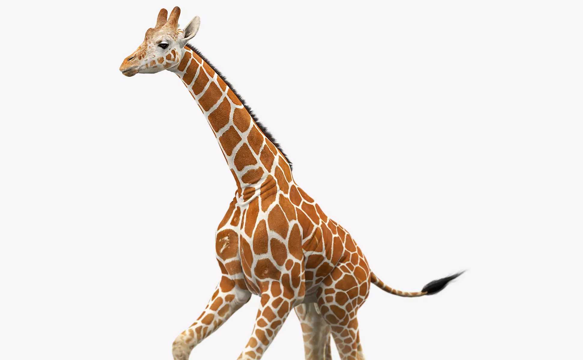 High detailed realistic giraffe model. Clean UVmapped, professional textured, rigged and animated. Based on high quality sculpting and best references.Smoothable mesh with quads mostly. Mouth is openable and have all inside stuff.Hooves, eyes, gum, teeth and tongue are separated meshes. Tail, mane and eyelashes are made by planes with transparency.