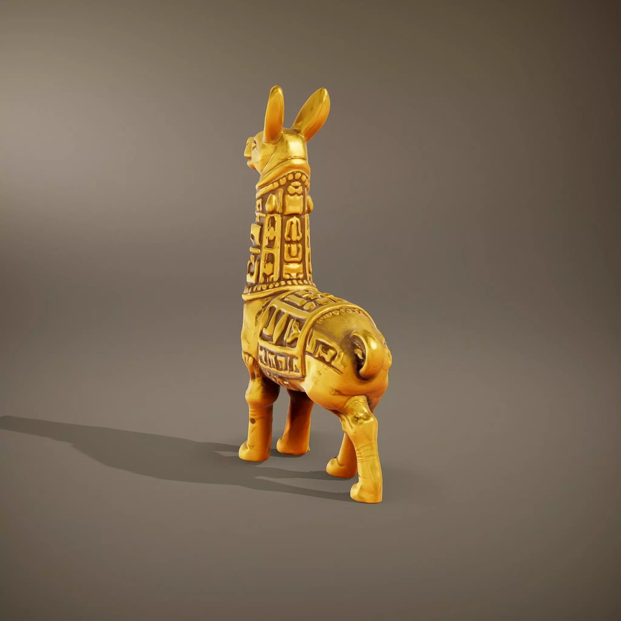 This Golden Llama Sculpture model pack features a beautifully detailed representation of a llama in a striking gold finish, capturing the elegance and charm of this majestic animal. Perfect for historical and cultural renderings, it can be used in virtual museums, educational animations, or game settings. Each model comes with three levels of detail: low-poly (1000 triangles for mobile), middle-poly (10,000 triangles for environment), and high-poly (100,000 triangles) suitable for production rendering in tools like 3ds Max, Maya, Cinema 4D, Blender, and compatible with game engines like Unity and Unreal. The textures are PBR with Diffuse, NormalMap, and reflection/roughness/metallic, with a resolution of 4096x4096, ensuring high quality across all modern rendering engines. All models are accurately unwrapped with no overlapping UVs. If you like this model, please leave a comment and like it!