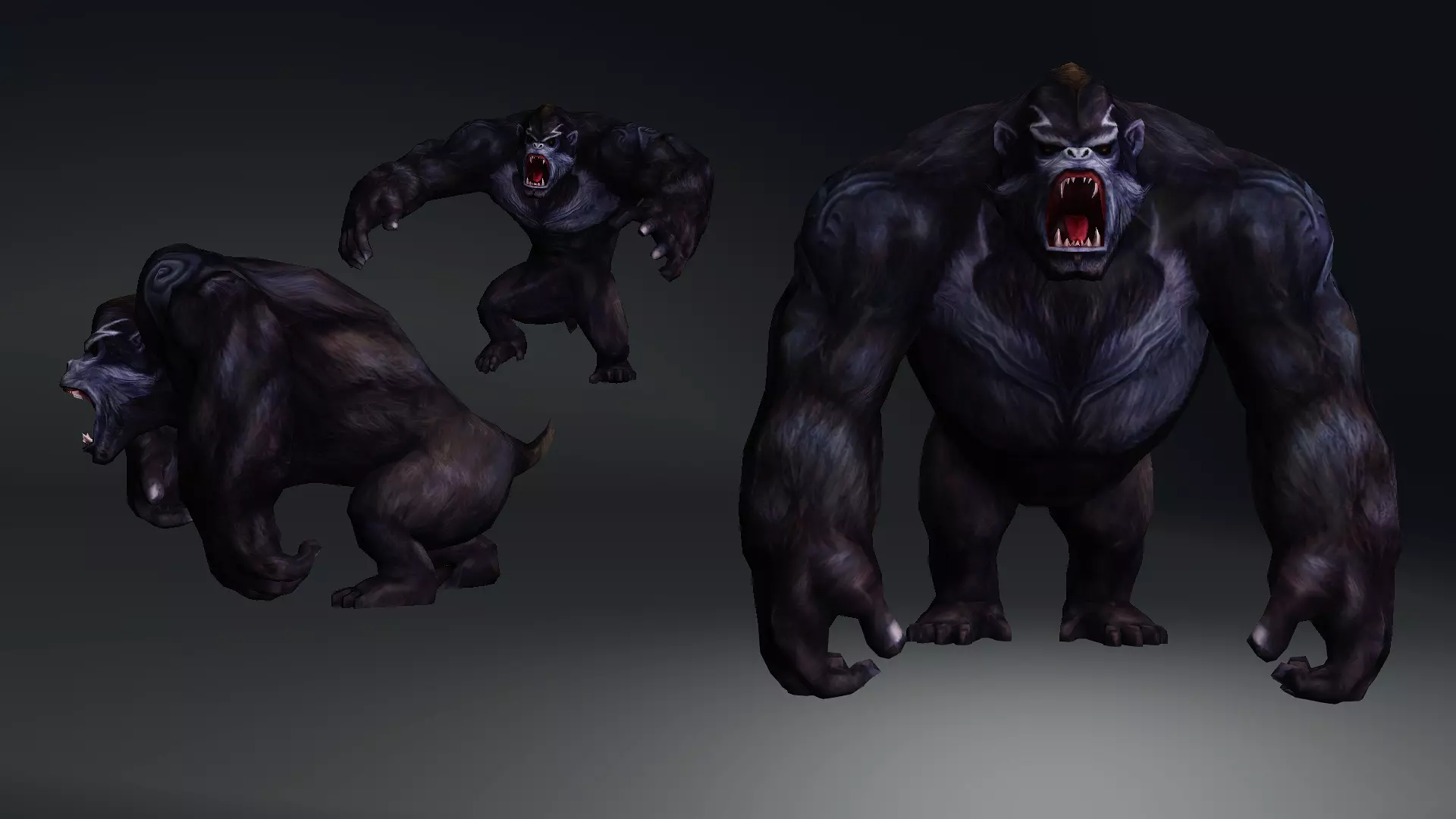 Verification details of the FBX fileFilesFBX file formatSceneSupported object typesGeometryNo N-gonsNo faceted geometryManifold geometryTextures and MaterialsRequired PBR texturesNo embed texturesTexture aspect ratioPower of 2 texture sizesAssigned materialsUVsNo overlapped UVs per UV islandUV unwrapped modelNamingAllowed charactersgorila animated 3d modelLow poly, game ready, realistic gorilla 3D model, face and body rigged, ready for game engines. Pbr textures of 2048 resolution. 104 joints. Contains Maya rig file, confugured HIK for body, and animated*curve controllers* for the face blendshapes, set up with driven keys. Sale contains 2 fbx setups, one that was used for render and one for game engine version with separated hair mesh.