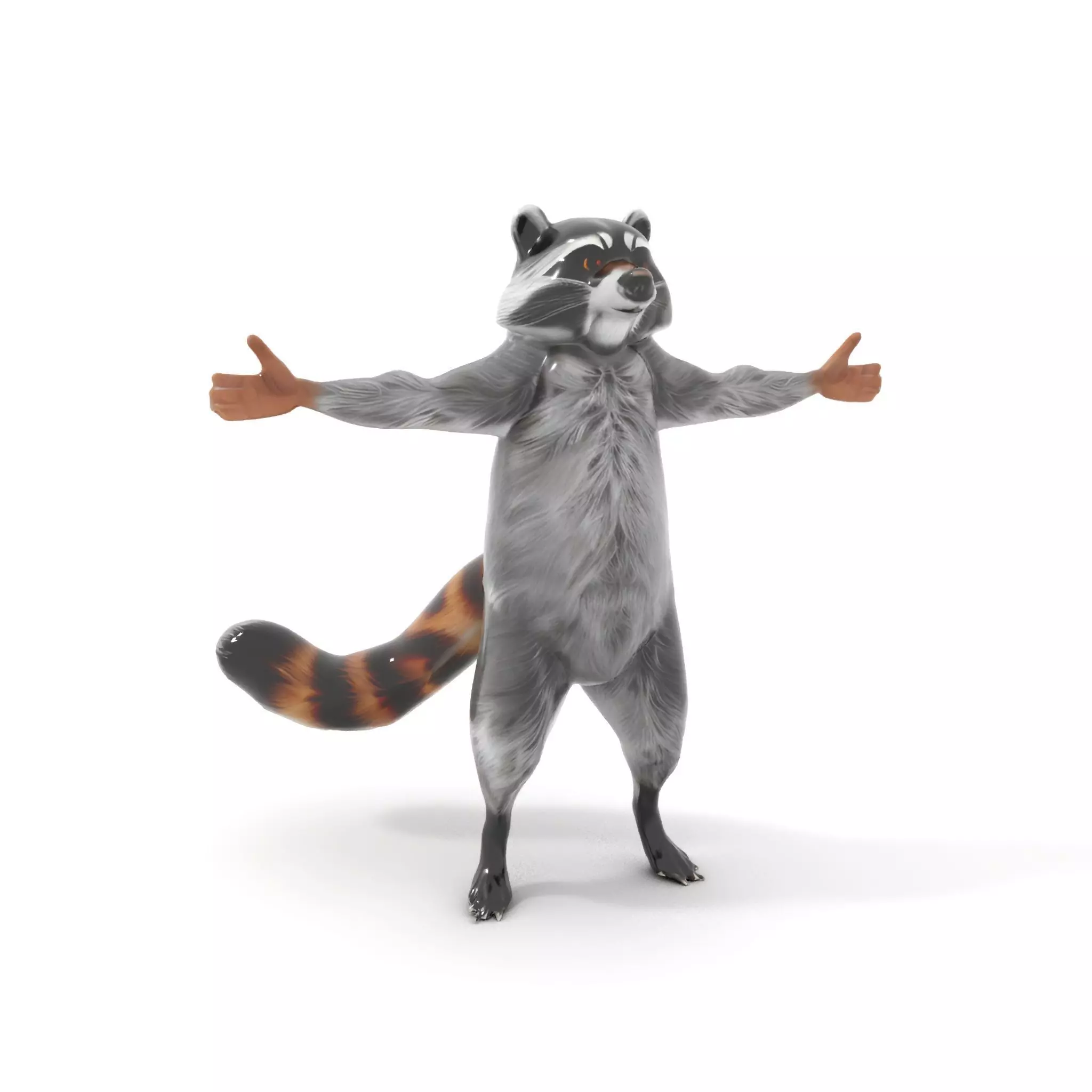 This detailed 3D model of a grey raccoon with vivid fur texture is ideal for animation, wildlife simulations, or educational content. Its lifelike appearance and expressive features make it perfect for interactive presentations, games, and films.