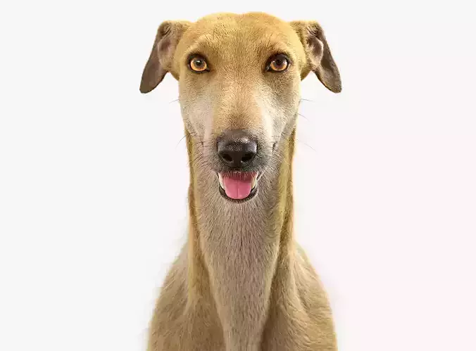 High detailed realistic Spanish Greyhound model. Clean UVmapped and professional textured. Based on high quality sculpting and best references.Smoothable mesh with quads mostly.Mouth is openable and have all inside stuff.Claws, eyes, gum, teeth and tongue are separated meshes.