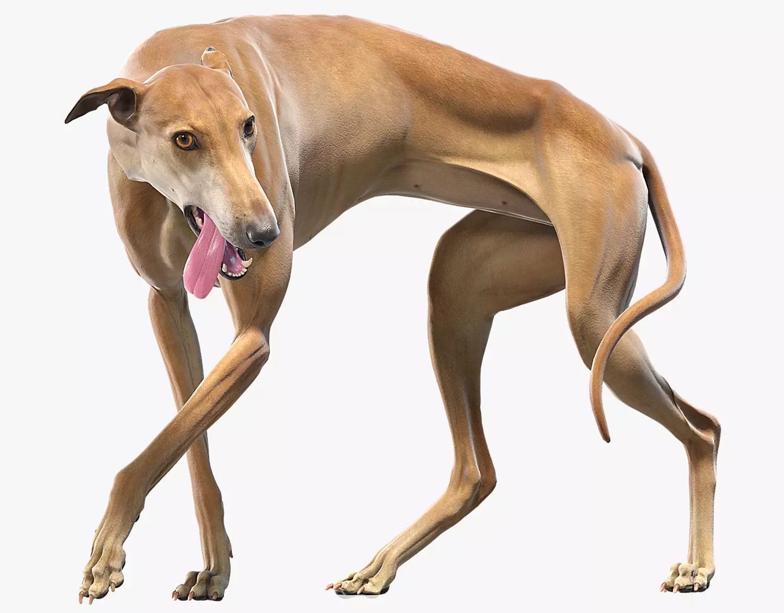 High detailed realistic Spanish Greyhound model. Clean UVmapped, professional textured and fully RIGGED.Smoothable mesh with quads mostly.Mouth is openable and have all inside stuff.Claws, eyes, gum, teeth and tongue are separated meshes.
