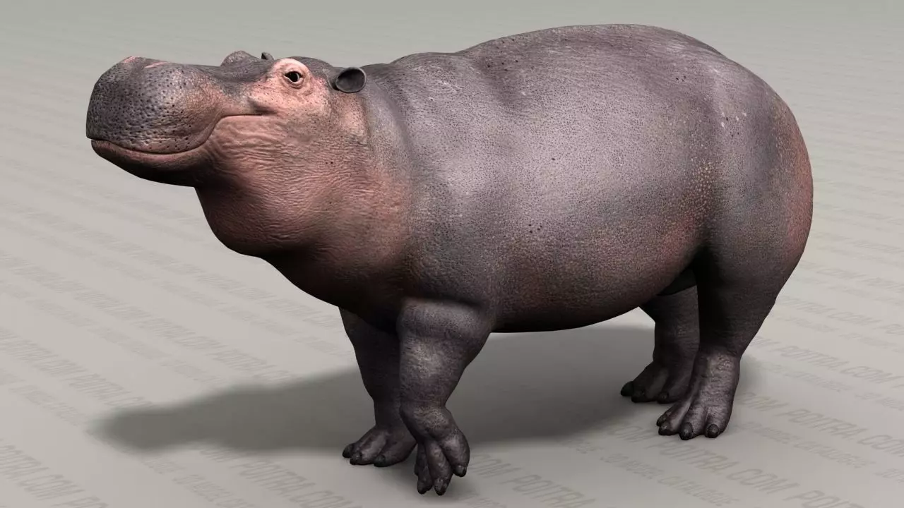 3D Model Hippo (Hippopotamus Amphibius) Adult Male (Pose 1) by POITRA Visual (Textured 3D Model). Pose 1 is an individual hippo model taken from our 4 Pose Hippopotamus Amphibius Collection (sold separately). The common hippopotamus or river horse has been around since prehistoric times and inhabits the rivers, lakes, and swamp wetlands of Africa. Our 3D model hippo's body and eyes are separate 3d objects (see rendered images).