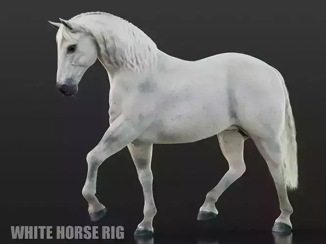 High Detailed Photorealistic Horse (White Color); UVunwrapped and smoothable, made with Maya. X-GEN (CORE) for grooming.This model has a clean geometry based on loops and ‘only’ quads.