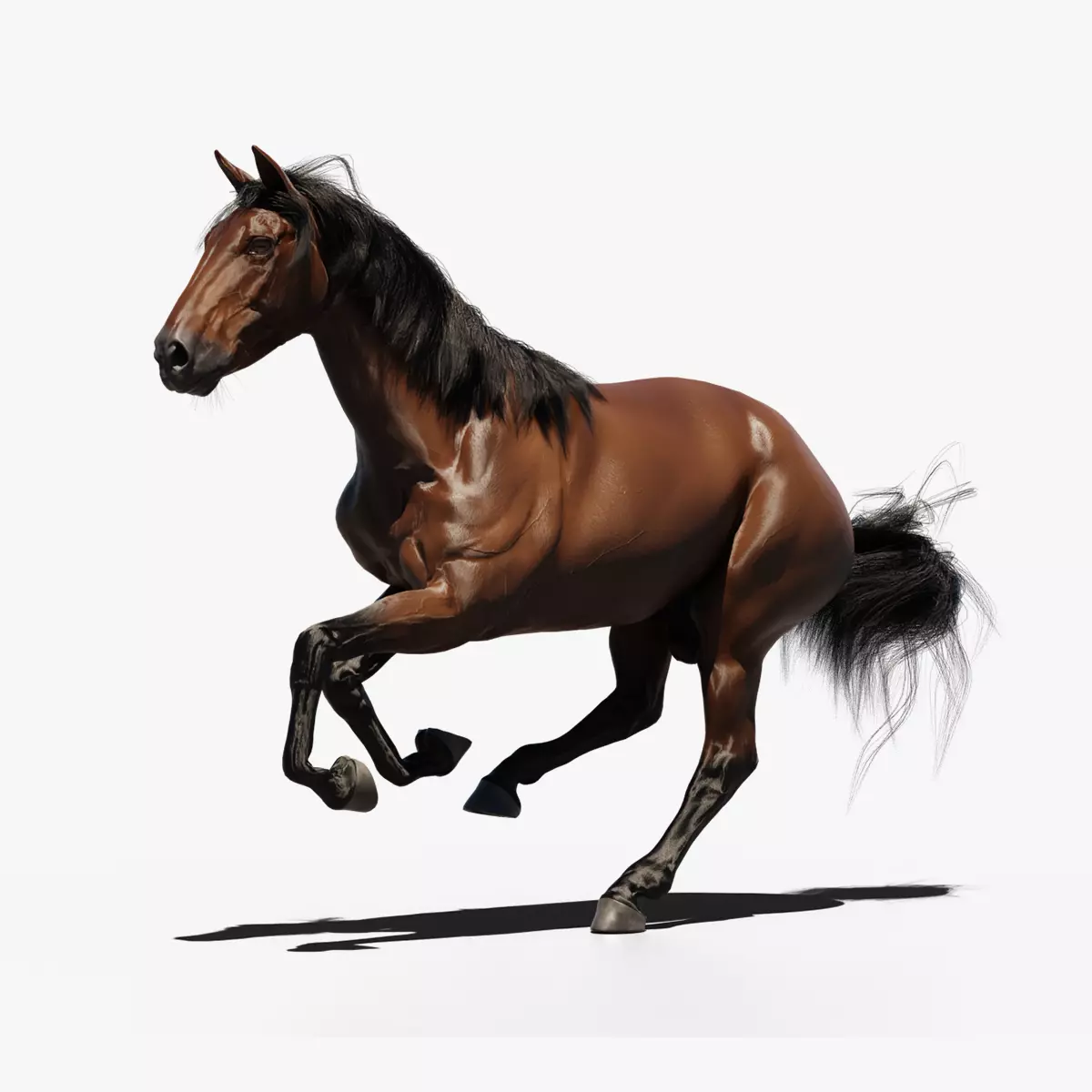 • There are 7 fbx: full animated version, static model and rig, rig with run-cycle, rig with walk-cycle, trot-cycle, rear, idle.