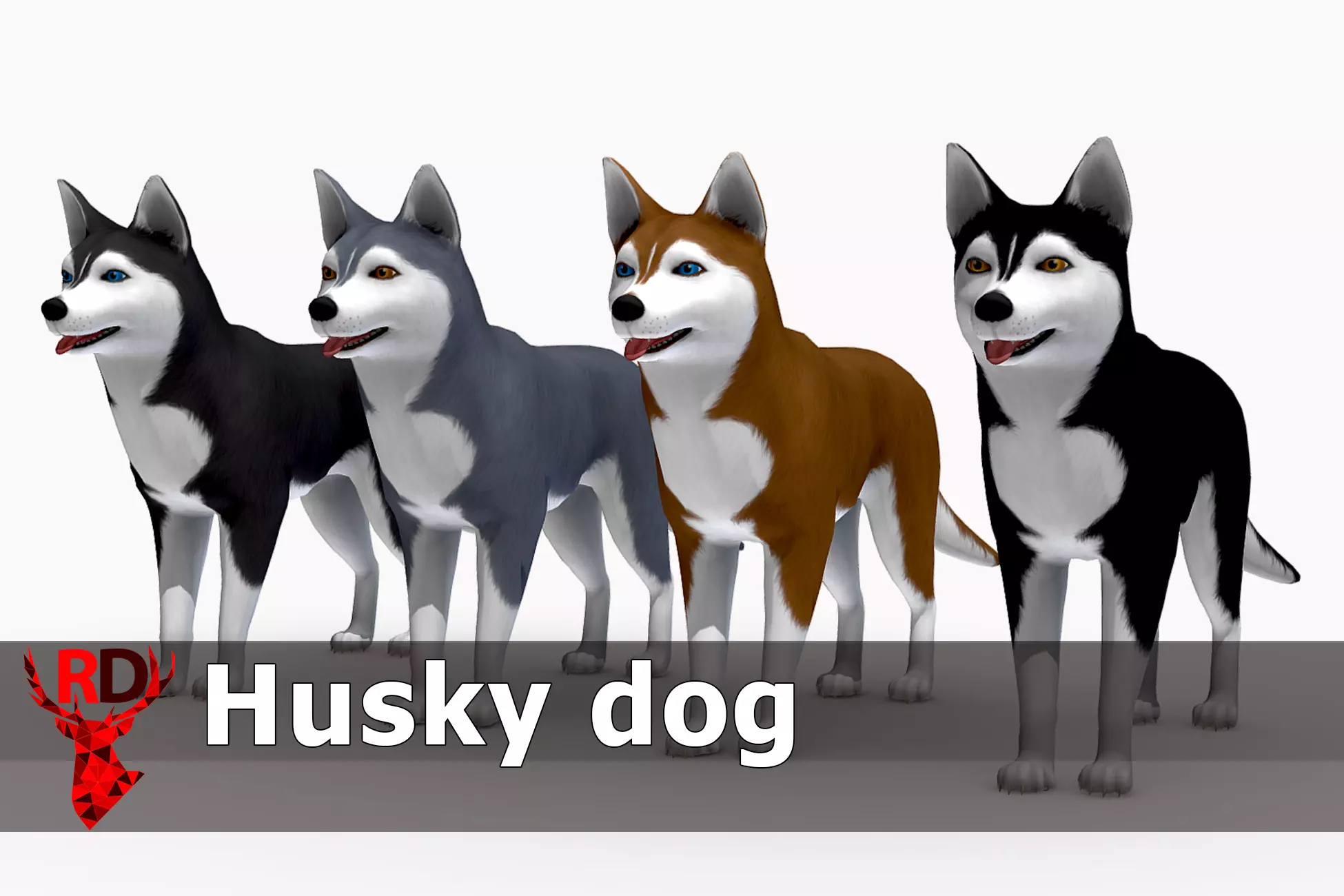 This asset has toon HUSKY DOG model.The model has 7000 tris and 53 bones.Texture map - only albedo 2k.Husky has 4 color versions.