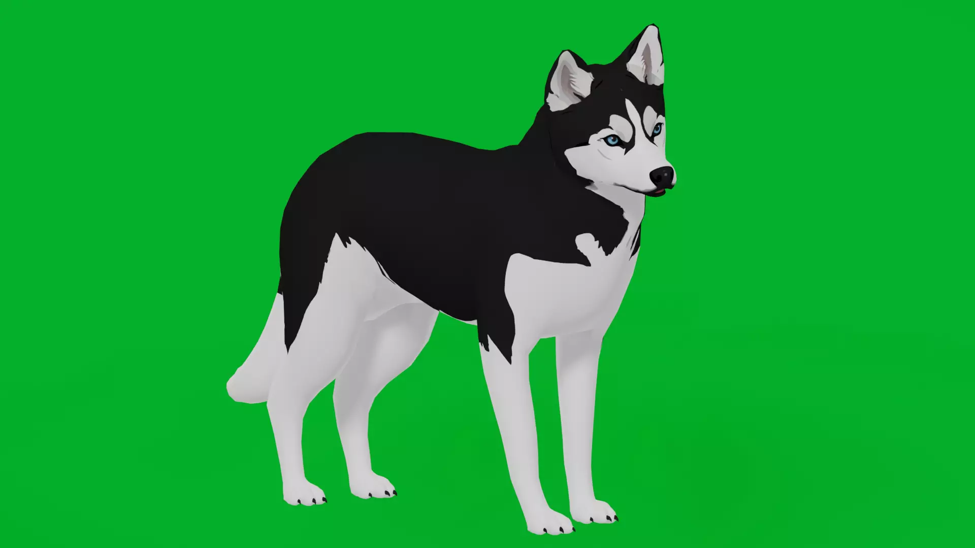 The Siberian Husky is a breed of medium-sized working sled dog. The breed belongs to the Spitz genetic family. It is recognizable by its thickly furred double coat, erect triangular ears, and distinctive markings, and is smaller than the similar-looking Alaskan Malamute. .3D Husky Stylized Dog Animal Model By Nyilonelycompany (nyc).