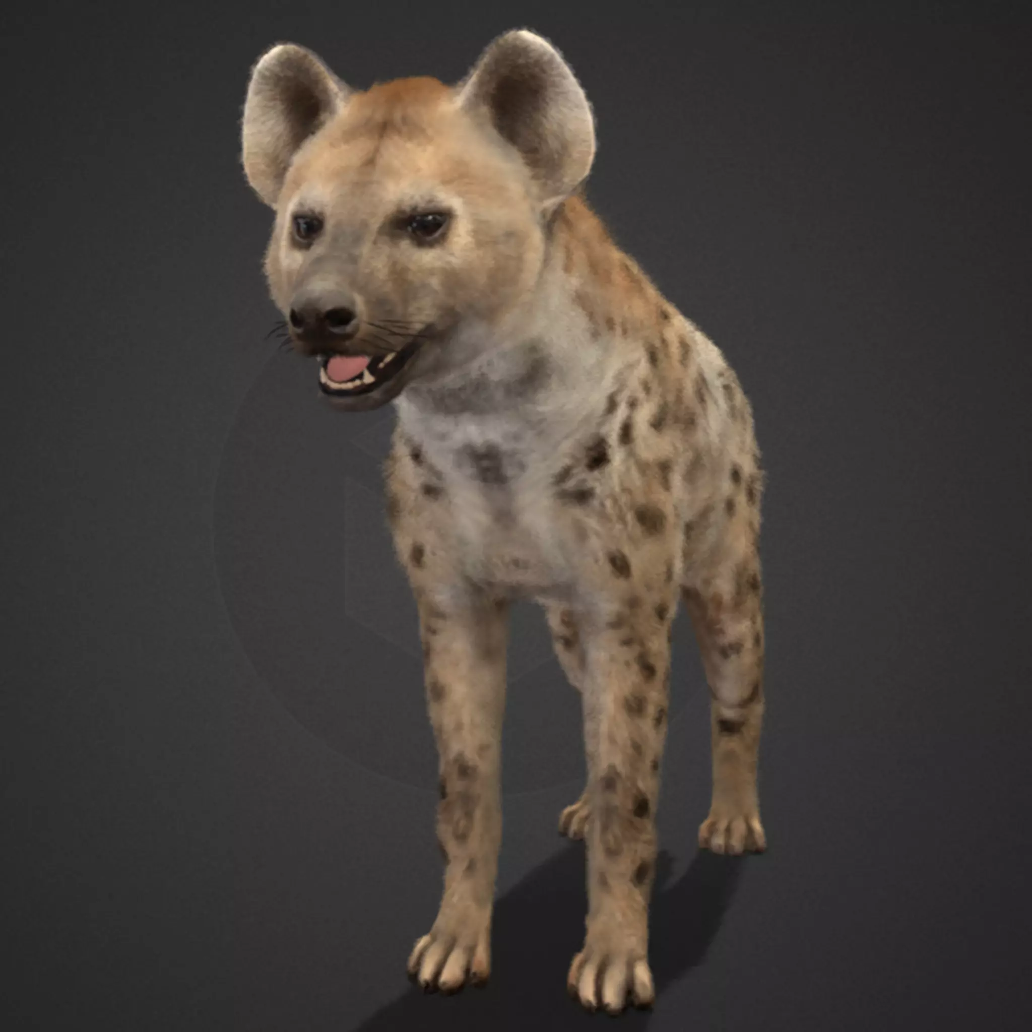 This is a high-quality realistic Hyenal with complete maps, fur, rigging, realistic animations. The model has a realistic muscle structure, a complex hair system created in Blender which makes the hair natural and realistic ( HAIR CARD ). This model is made with Blender and Maya . It consists of the body, eyes, eyelids, oral cavity, tongue, paws.