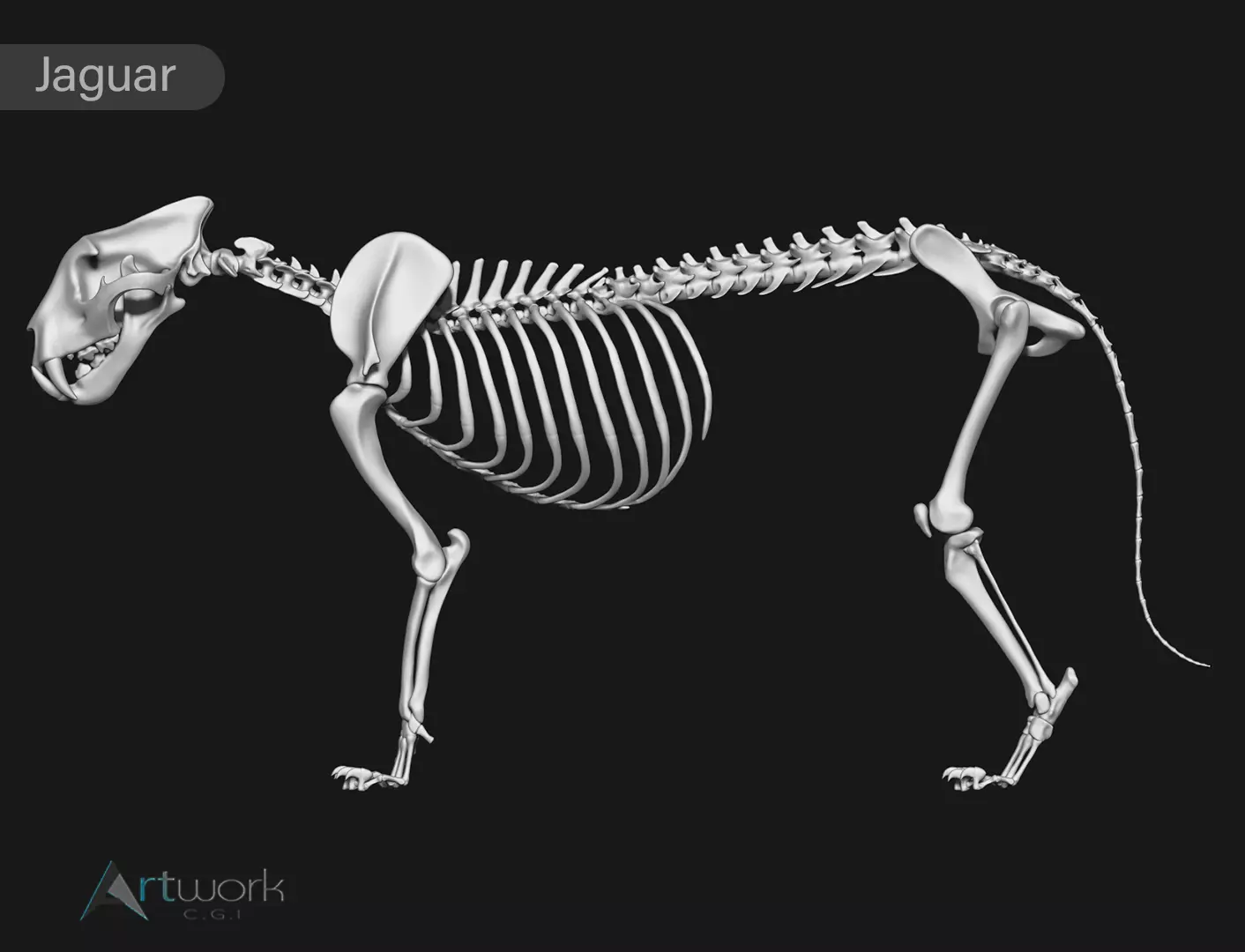 High poly Sculpture of Jaguar skeleton with clean mesh