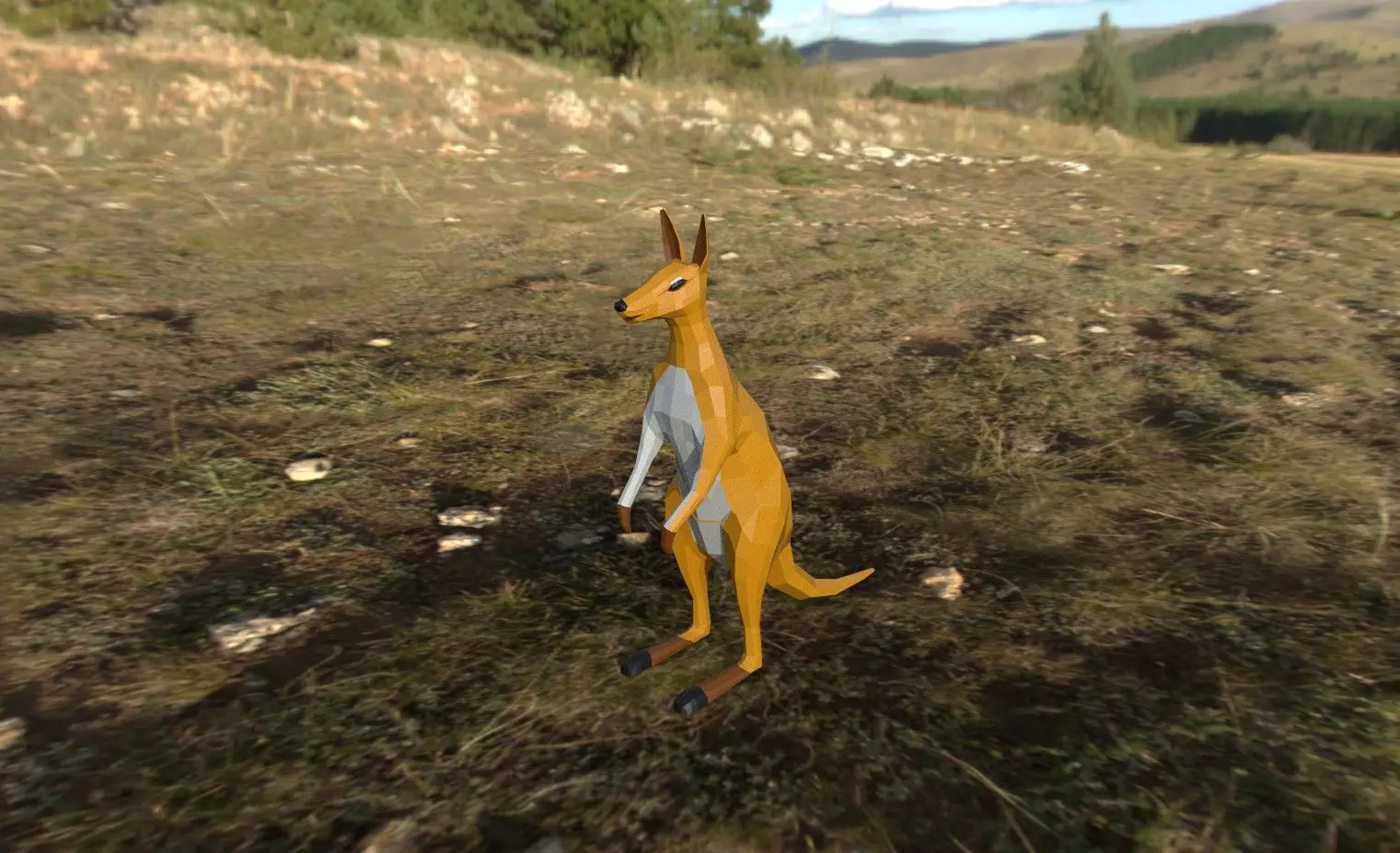 Low-poly Cangaroo kangaroo in field Low-poly 3D model