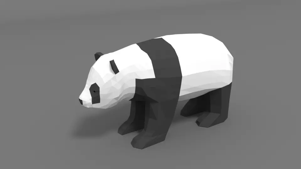 This is a low poly 3d model of a bear panda. The low poly bear panda was modeled and prepared for low-poly style renderings, background, general CG visualization. Clean topology (quads only) based on loop cuts ready for subdivide.