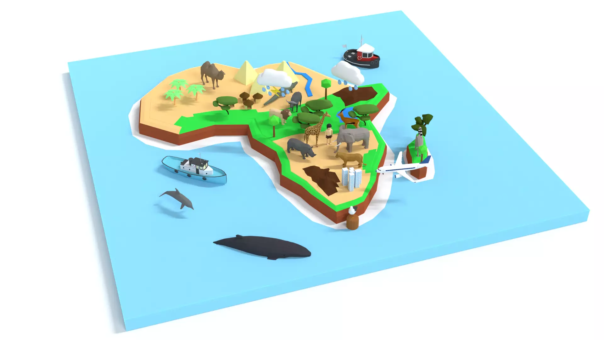 This is a low poly 3D model of an Africa map with 13 low poly animals. The low poly map was modeled and prepared for low-poly style renderings, background, general CG visualization presented as 41 meshes with quads/tris.