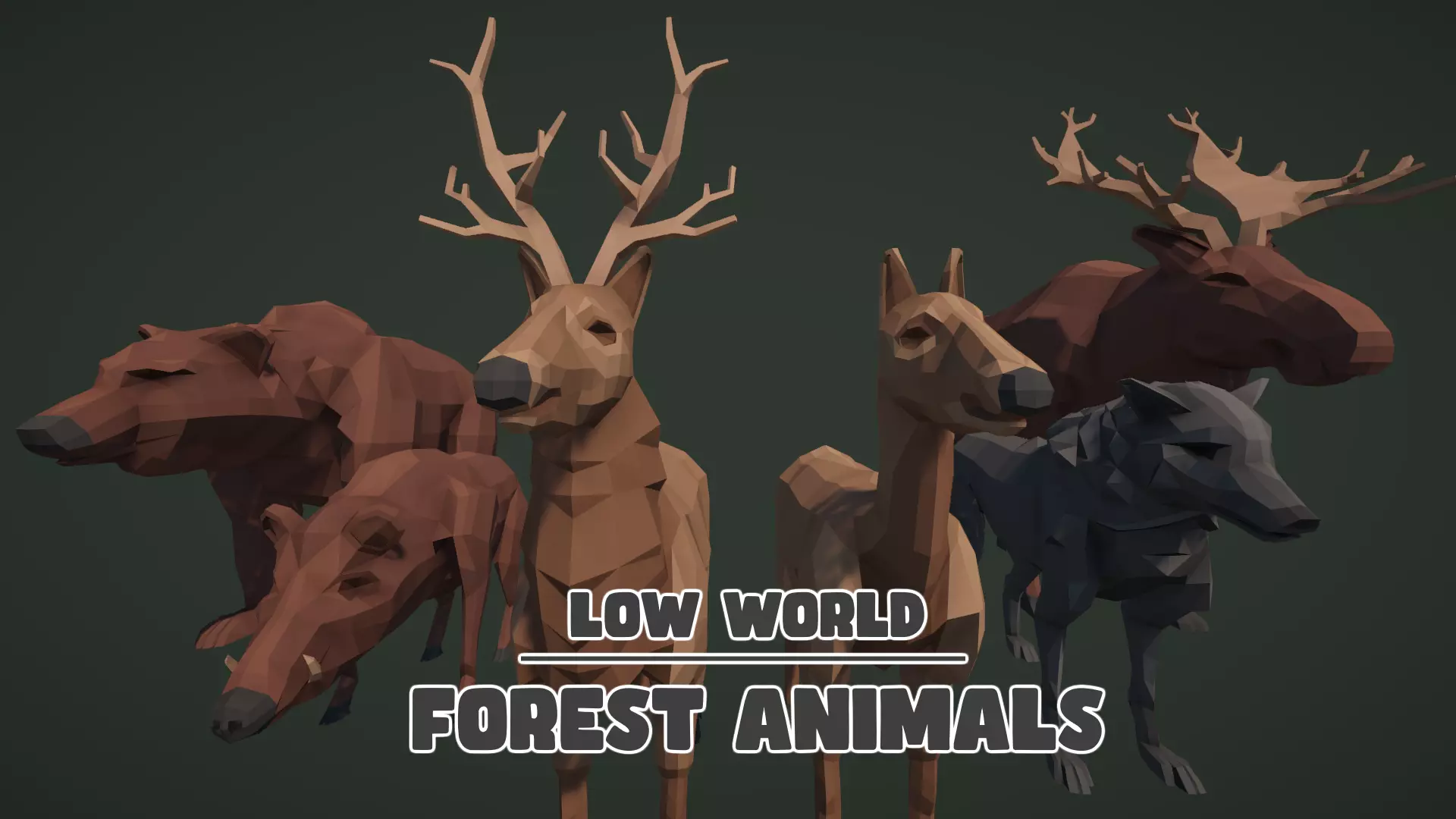 Low World forest animals kit with 8 different rigged animals with a low poly look.