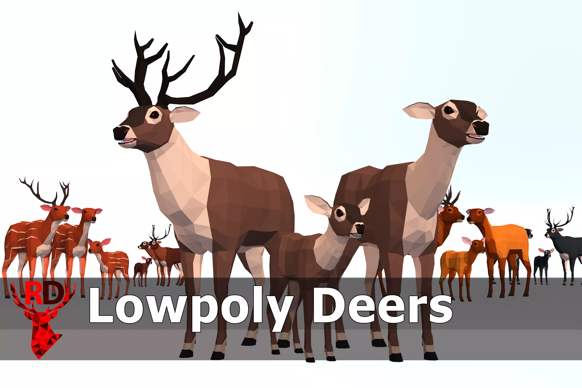 This asset has PolyArt Deers pack.Pak includes 13 color and geometry variations of stag, doe and calf. This pack is perfect for any mobile and PC games.The models has 1700 - 2050 tris.Texture maps - only albedo map 1024x1024.