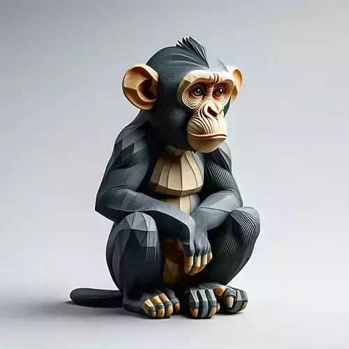 This 3D model presents a unique, stylized chimpanzee sculpture with a distinct low-poly aesthetic. Ideal for various applications, including game development, AR/VR experiences, 3D printing, and digital art projects. The model is available in multiple formats (GLB, OBJ, STL, FBX) ensuring compatibility with a wide range of software. Optimized for both real-time and static rendering, this chimpanzee model offers versatility for different project needs. Its low-poly nature makes it suitable for mobile games and AR applications, while the detailed texturing and clean topology allow for high-quality renders in architectural visualizations and digital art. The model is UV unwrapped and features PBR textures, enhancing its visual appeal and realism. Key features include clean topology, optimized polycount, and detailed textures, making it a valuable asset for any 3D project seeking a stylized and expressive primate character.