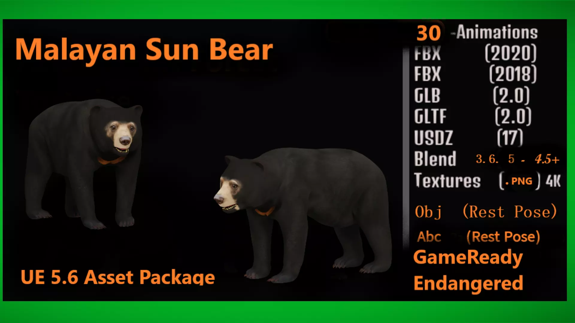 The sun bear is a bear species in the family Ursidae found in the tropical forests of Southeast Asia. It is the only species in the genus Helarctos and the smallest bear species, standing nearly 70 cm at the shoulder and weighing 25–65 kg. .3D Malayan Sun Bear Realistic Animal Model By Nyilonelycompany (nyc).Thank you.