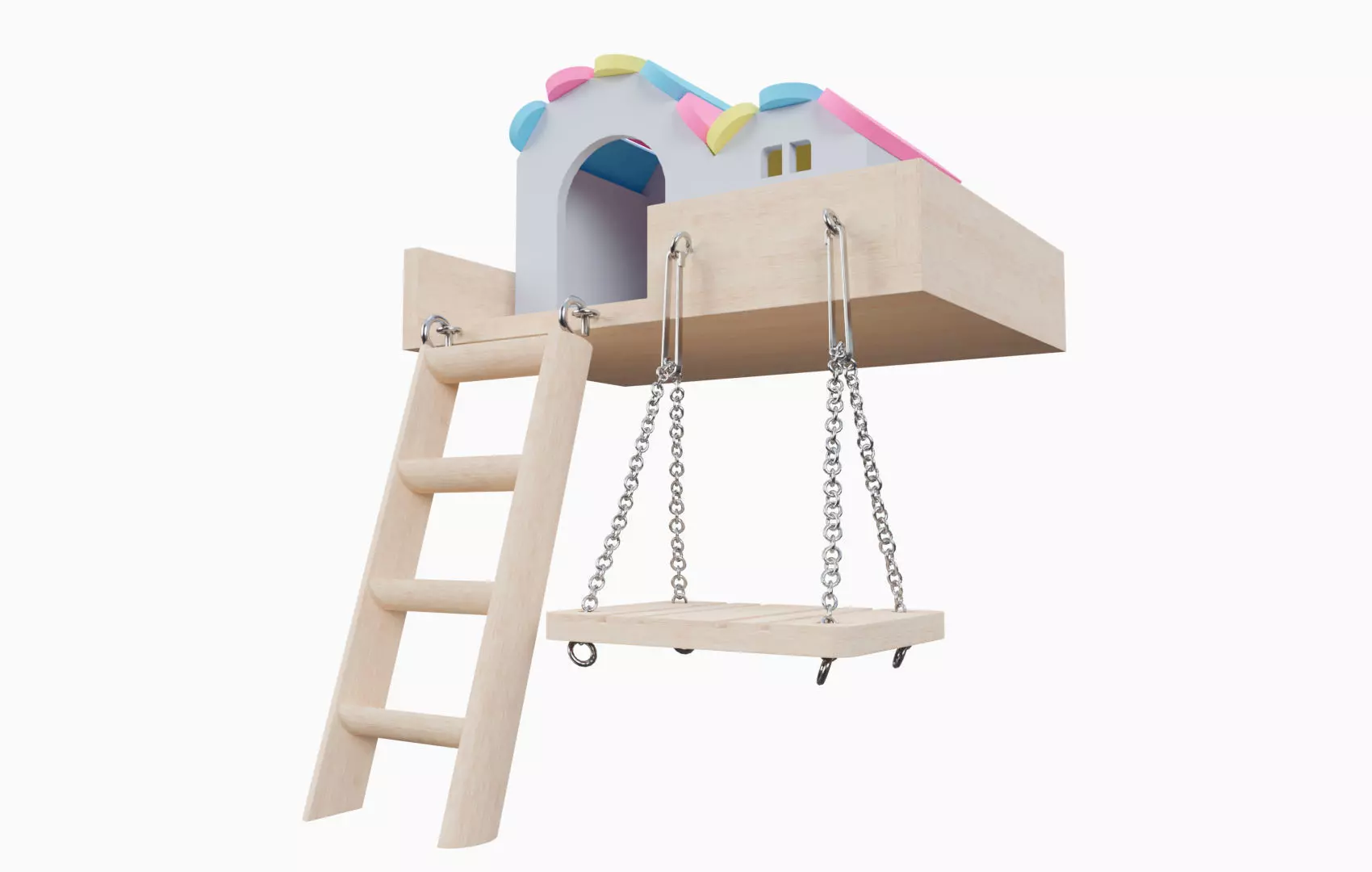 This 3D model is a Mini House With Swing For Hamster