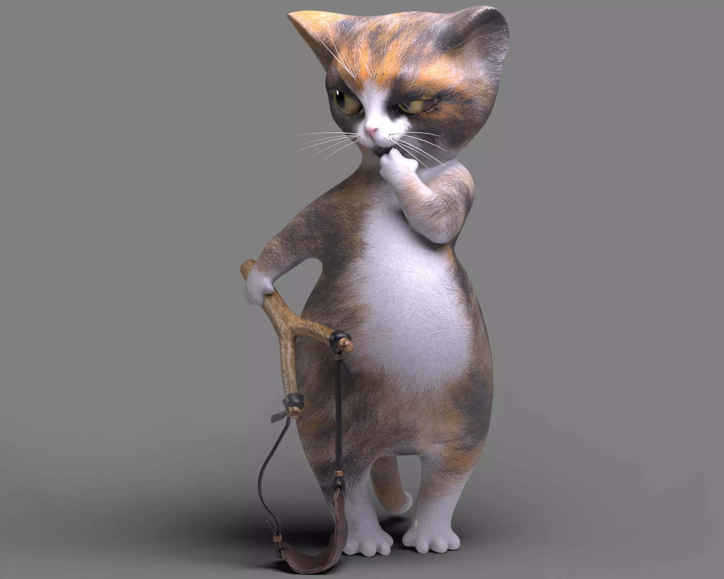 Low poly 3D model of a «Mischievous kitten». Created in Blender, optimal render Cycles. Detailed enough for close-up rendering. Comes with detailed textures. Texture resolution 4096x4096 jpg.Textures in WinRAR archive:• Primary color (albedo)• Normal map• Metallicity• Occlusion• Roughness• GlossinessA kitten with a slingshot - a little hooligan with a fluffy tail behaves like a real prankster. In the morning, he is already plotting something: he sits by the window, looks out at the target, under his paw is a slingshot made of rubber bands and a stick. On his face is an expression of serious strategic thinking, but in his eyes - a pure imp. If something crashed - most likely, it was him. He looks innocent, but his paws are busy. Always running around, hiding, rustling, and then pretending to sleep. A real prankster - restless and curious. And you can't scold him - so fluffy and happy!
