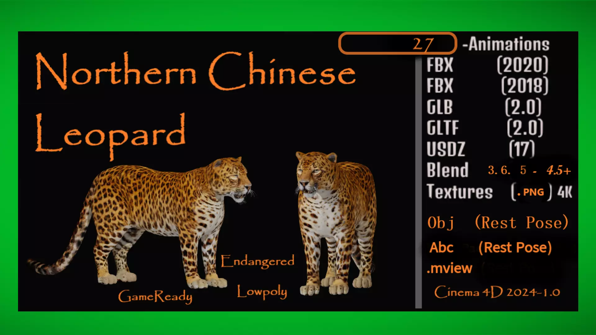 The Northern Chinese leopard, also known as the North China leopard (Panthera pardus japonensis), is a subspecies of leopard native to northern China and is currently classified as endangered. Its population is fragmented and declining due to habitat loss and other threats. ..3D Northern Chinese leopard Model By Nyilonelycompany (nyc).