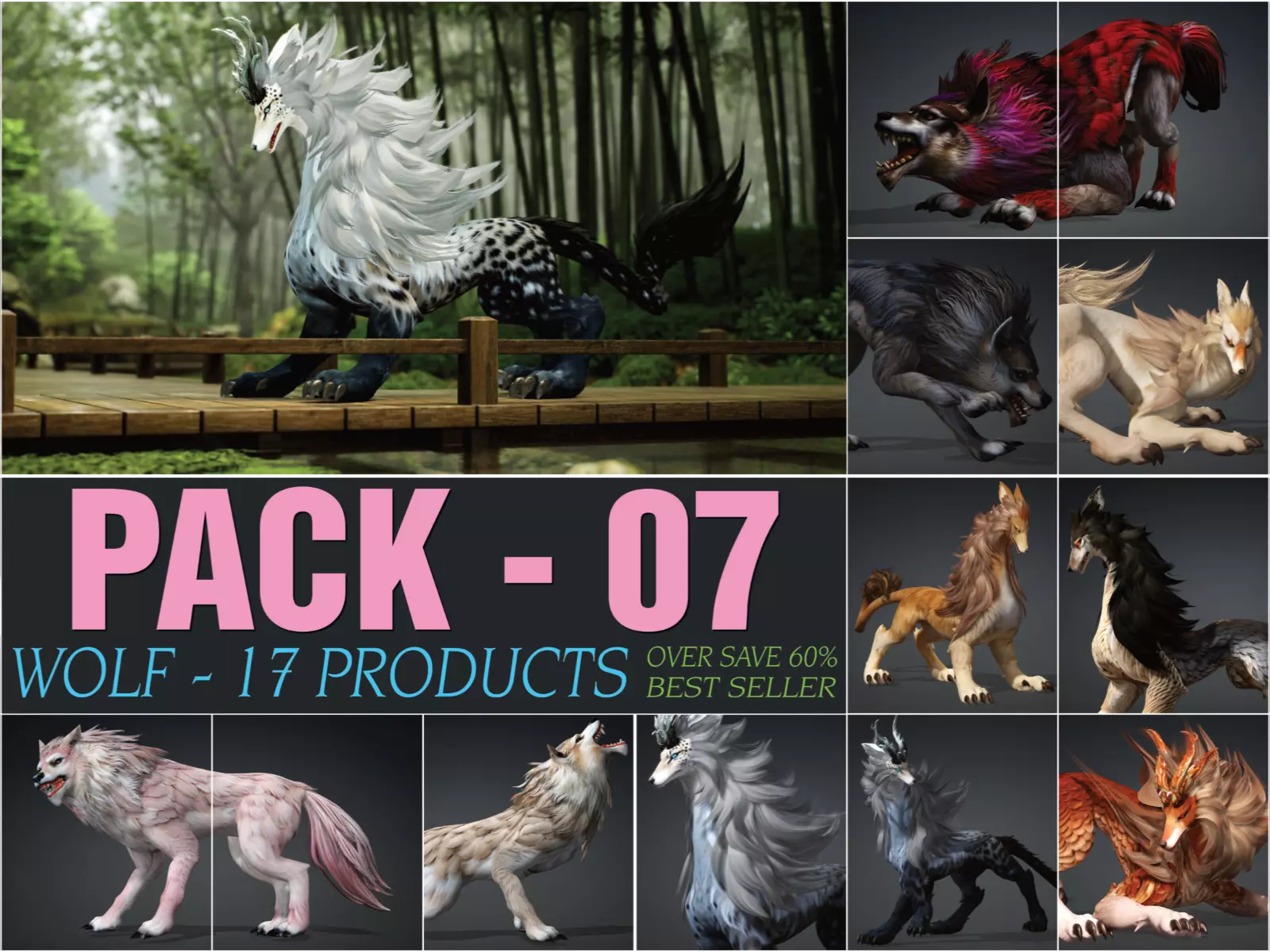 Motions: 13- Atk,Bow,Eat,Howling1,Howling2,Idle,Jump,Play,Run,Runslow,Smell,Talk ,Walk