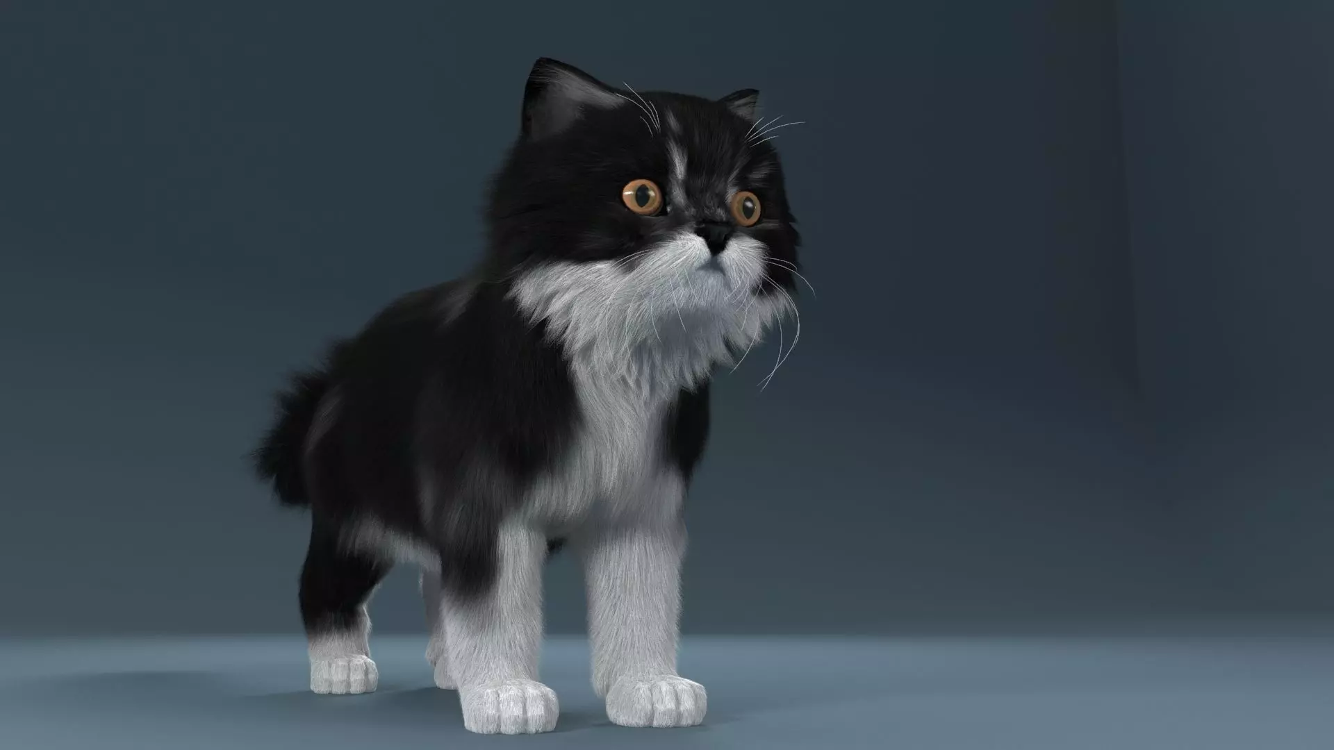 Eyeballs, corneas, mouth, whiskers and tongue are included and modeled separately