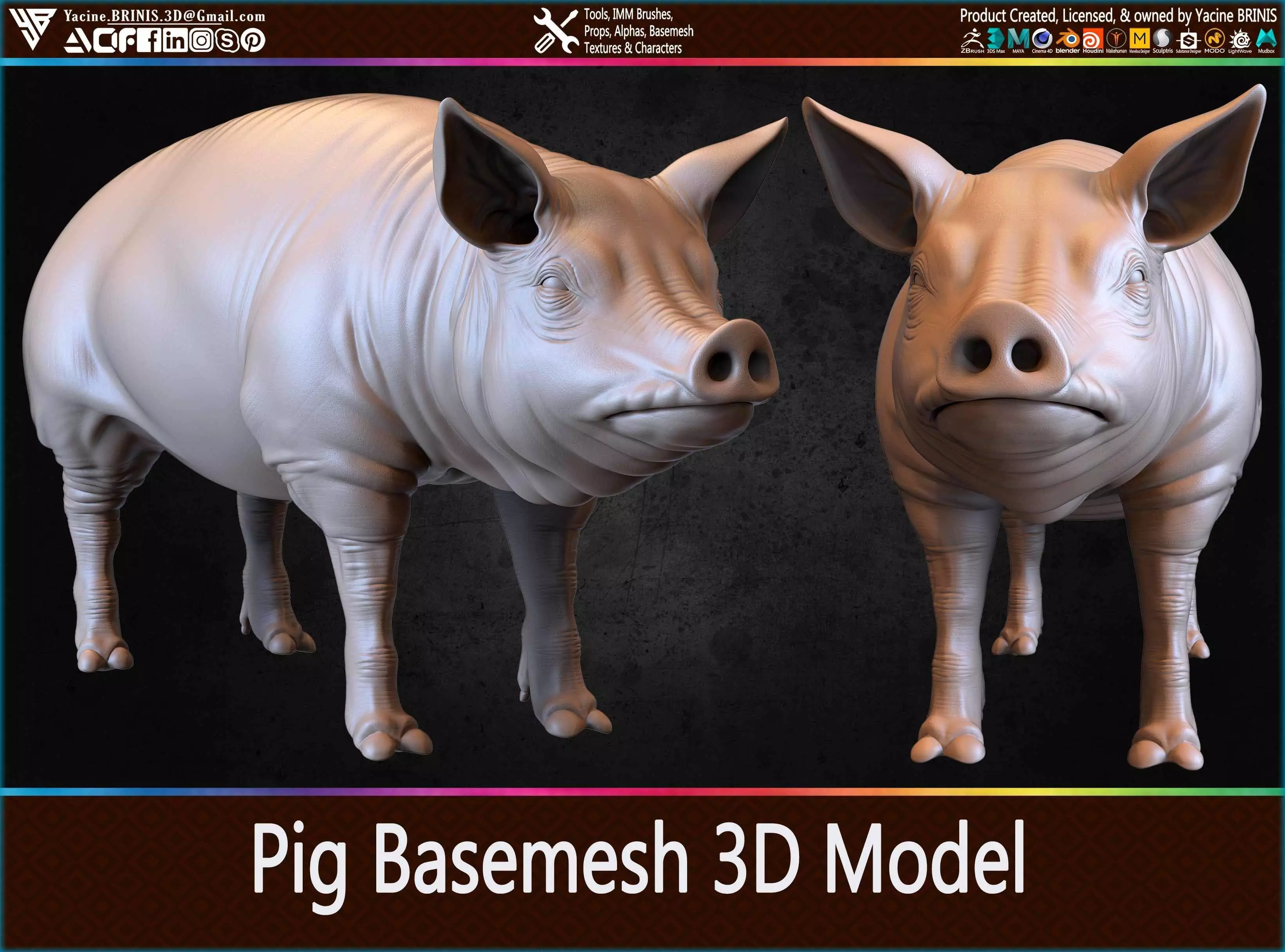 • 01-Pig Basemesh 3D Model High Poly ZTL File