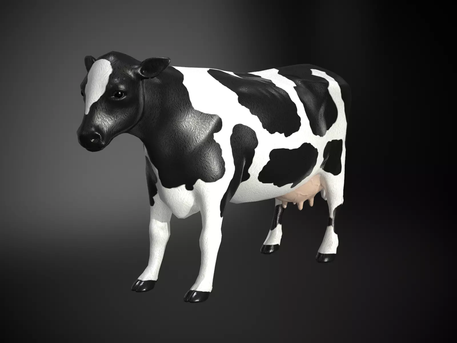 Plastic cow figurine model. This is not a 3D scan but hand sculpted and retopologized model with PBR textures, ready for production.Ready 2048x2048 PNG Metal-Roughness textures saved losslessly in .PNG format.