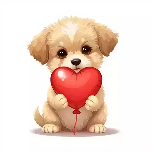 Tags3d model kawaii puppy romantic character game ready asset heart balloon tan fur cute dog valentine's day theme soft painterly textures high detail expressive eyes isolated character pbr materials digital collectible plush aesthetic