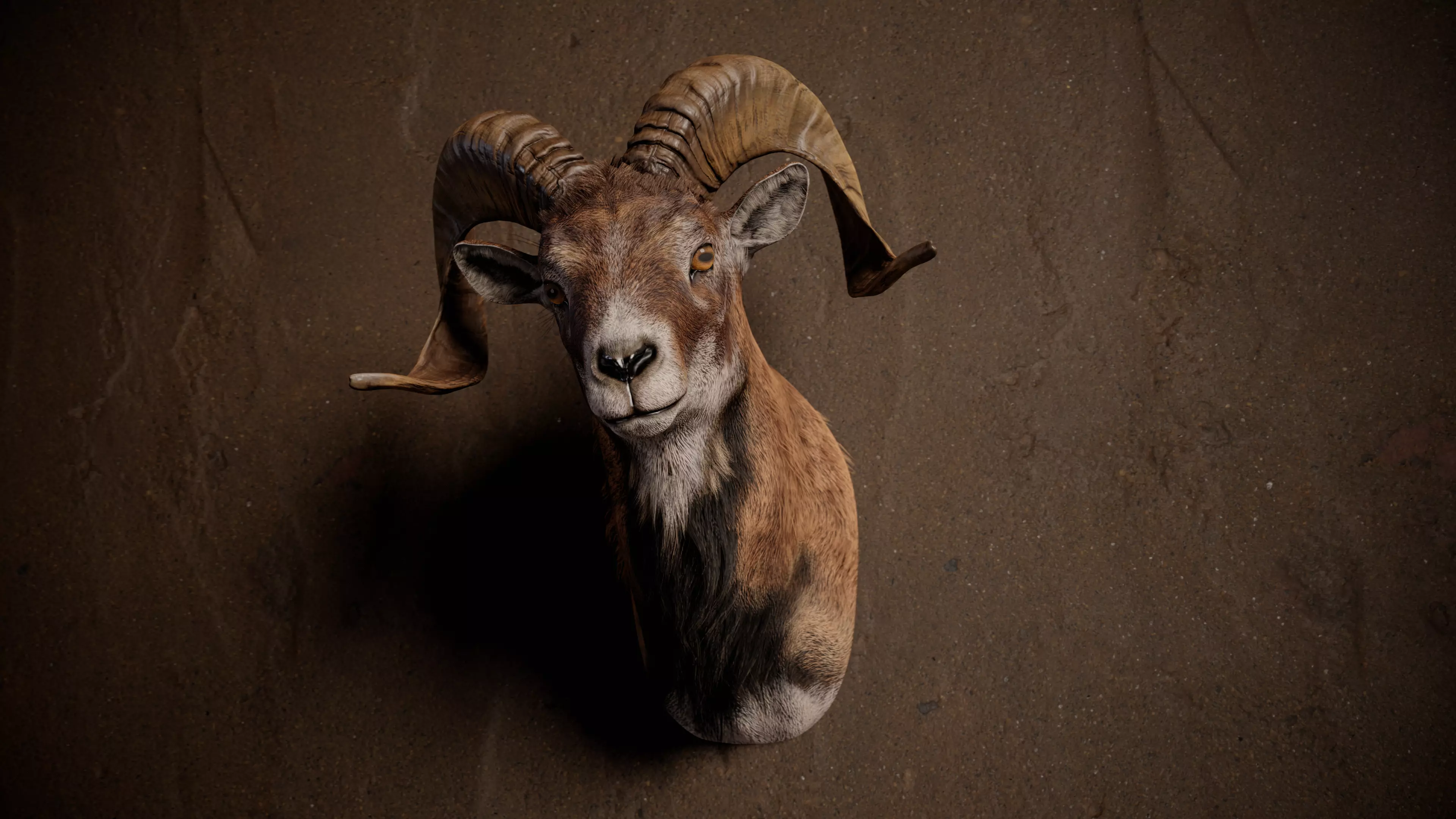 This high-quality, photorealistic 3D model of a mounted ram trophy head is designed for use in games, visualizations, and virtual environments. The model features detailed textures, realistic fur, and accurate anatomy, making it a perfect choice for hunting lodge interiors, wildlife exhibits, and immersive nature scenes.