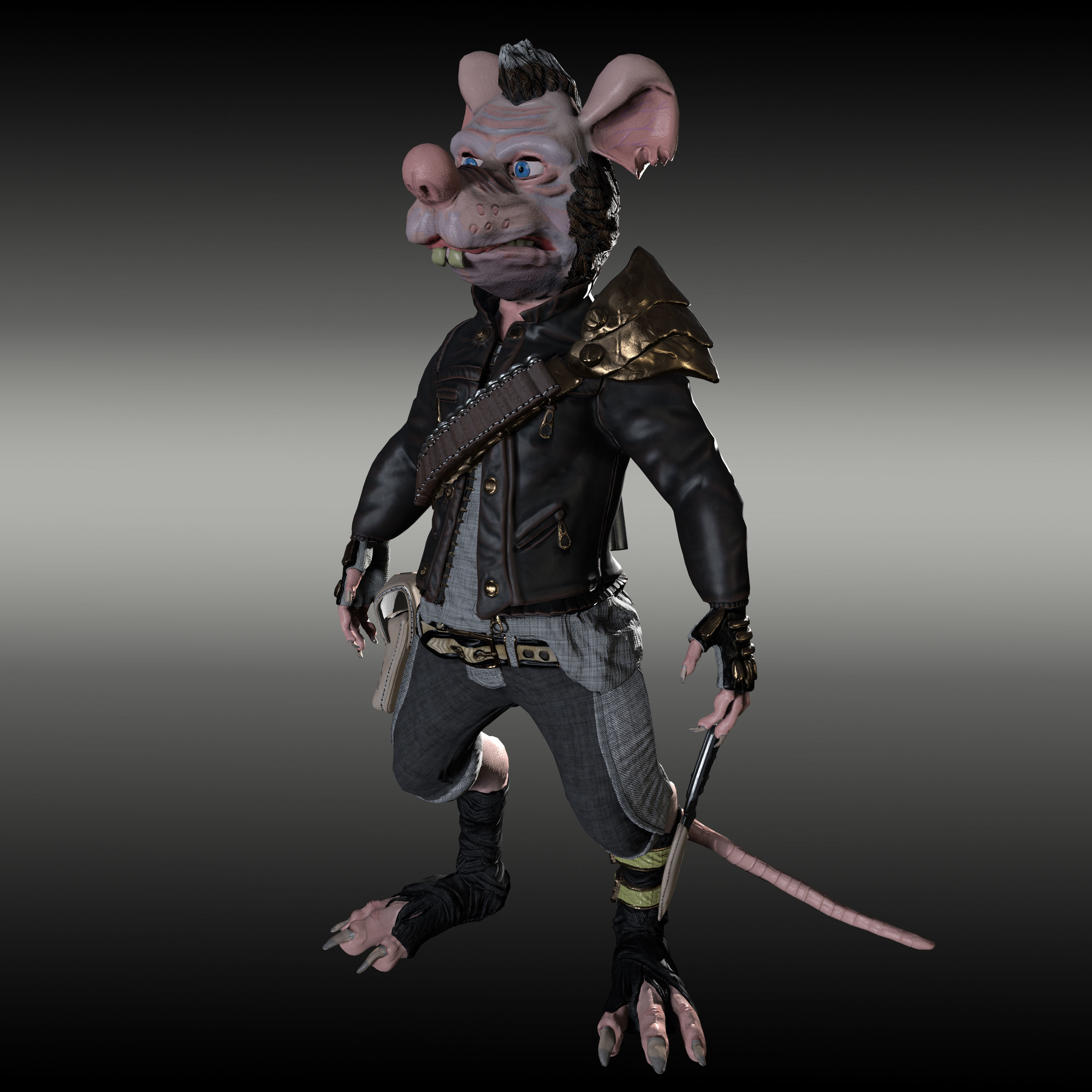 Hello! I want to introduce you to my work . The character is a Rat bandit .The model contains 133802 polygons and 66918 vertices . For the character, I made 4 different sets of textures and 2 sets for weapons . The work is saved in 3d max 2014 and FBX. The model has a skin . Visualization was performed in the Marmoset Toolbag and V-Ray