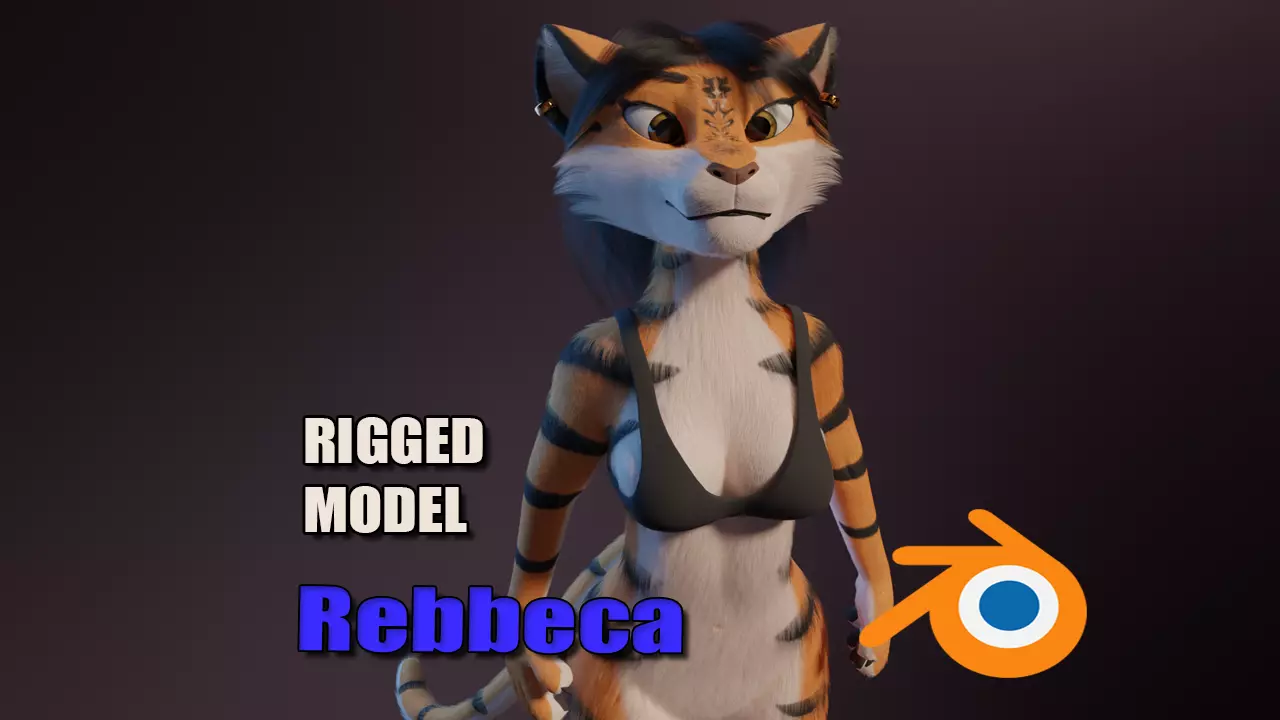 3D model of an anthro tiger made in Blender (.Blend) that I named Rebecca. Rig , Hair and Fur only in blender, other formats only model mesh