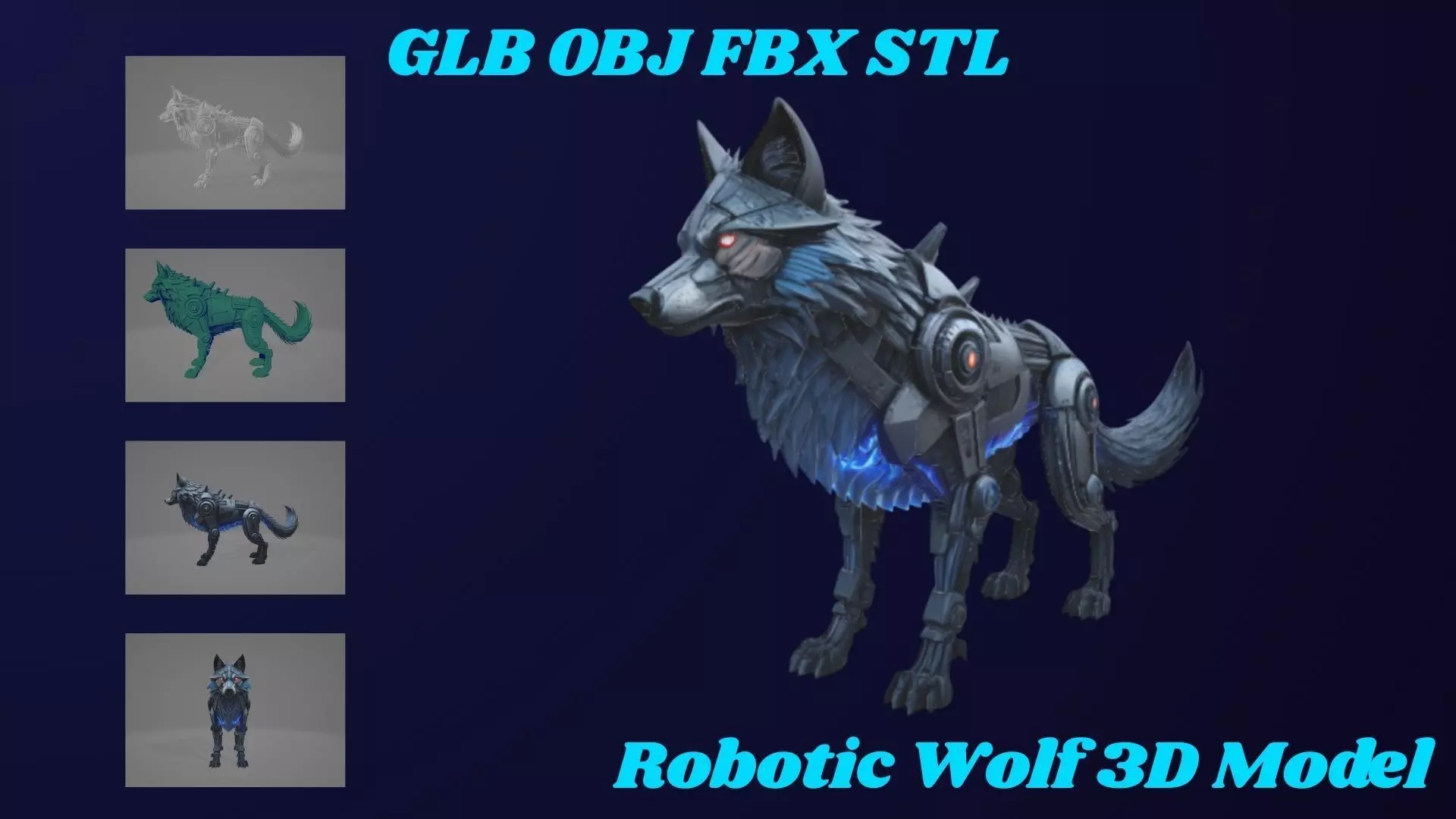 This futuristic mechanical wolf features detailed armor plating, exposed mechanical joints, and sharp angular panels that create a powerful sci-fi presence. The head design combines layered metal structures with glowing red eyes, giving it an aggressive and intelligent cybernetic look.The body is built with segmented armor and visible circular joint mechanisms on the shoulders and hips, adding industrial depth and realism. A glowing blue energy core in the torso enhances its futuristic identity and creates a striking visual effect, especially in cinematic or dark environments.The articulated mechanical legs and armored tail maintain structural consistency, making this model ideal for sci-fi games, cyberpunk scenes, futuristic worlds, cinematic renders, and robotic creature concepts. Model is provided unrigged for flexibility and custom setup.