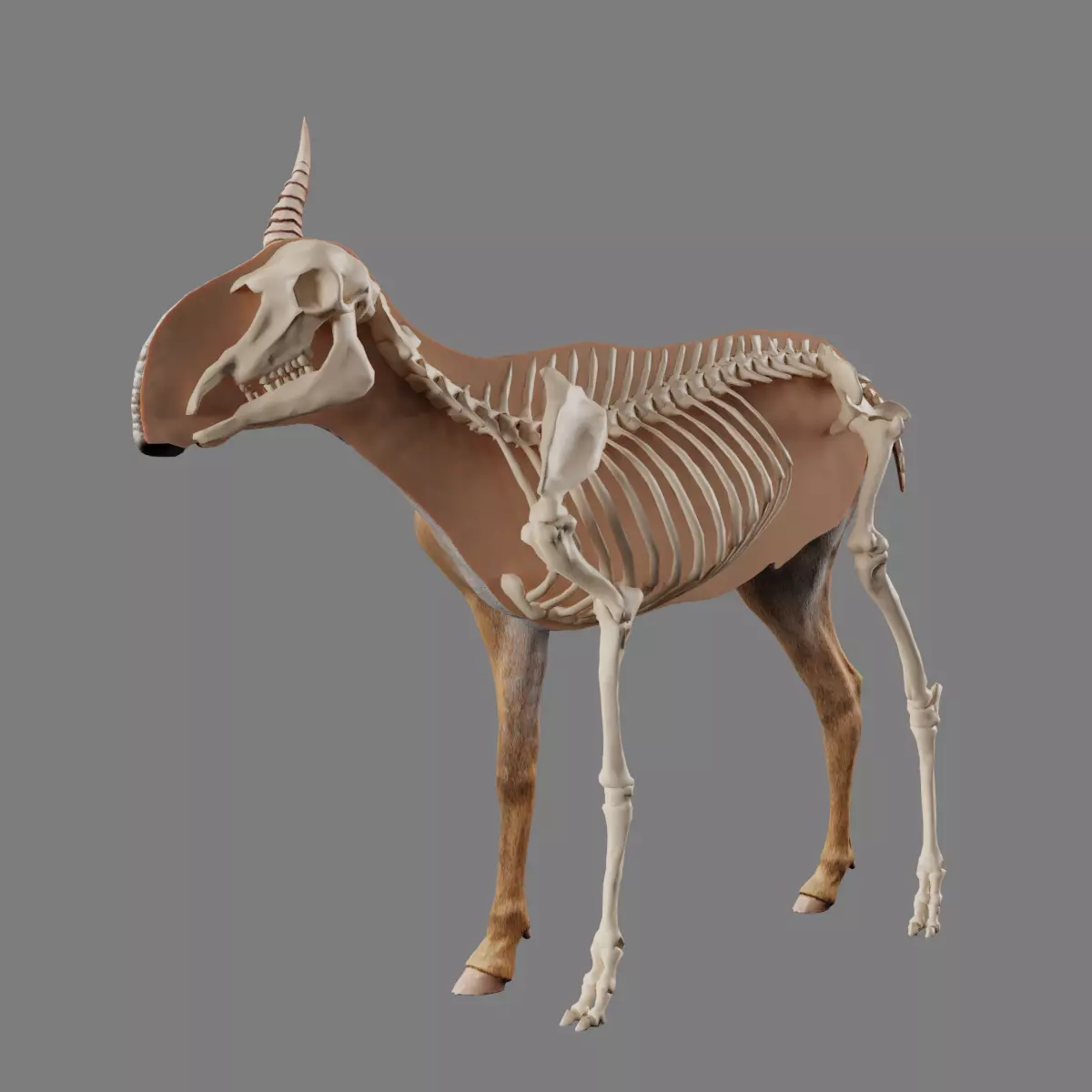 Low poly model of Saiga Antelope and bone