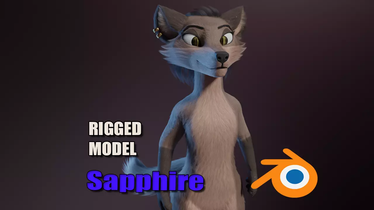 3D model of an female fox made in Blender (.Blend) that I named Sapphire. Rig , Hair and Fur only in blender, other formats only model mesh