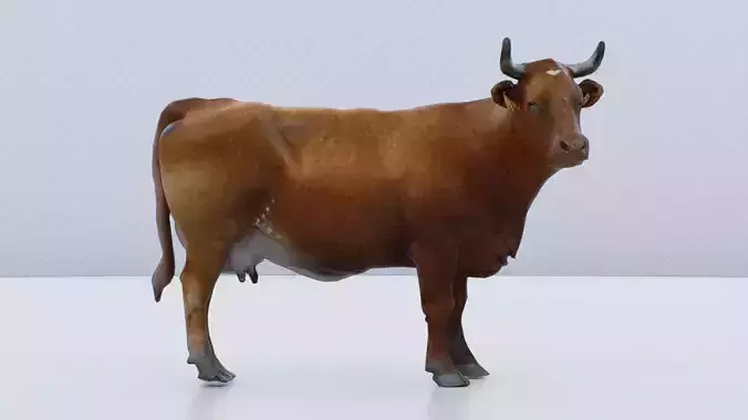 This 3D low-poly model depicts a Shorthorn cattle (Bos taurus), a hardy and widely recognized breed known for its adaptability and dual-purpose utility in both beef and dairy production. The model captures the breed’s characteristic reddish-brown coat, compact yet muscular build, and short, curved horns—hallmarks of the Shorthorn lineage. Designed with optimized geometry for real-time applications, it maintains anatomical accuracy while ensuring efficient performance in virtual environments such as farming simulations, educational platforms, or interactive media. The texture reflects natural skin details, including subtle shading and realistic hoof coloring, enhancing visual fidelity without sacrificing speed. This digital representation highlights the animal’s calm demeanor and sturdy posture, typical of domesticated bovines raised in temperate climates.