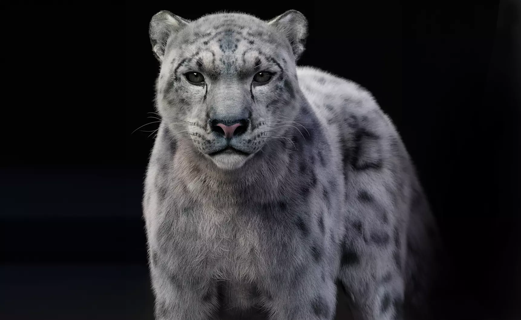 SnowLeopard_Mouth_Roughness_1003.pngIn BlenderTo run at better performance, hair is disabled in the Blender viewport, for smooth handling. This allows optimal Performance while animating.The 3D Model is modeled in real life meter scale.