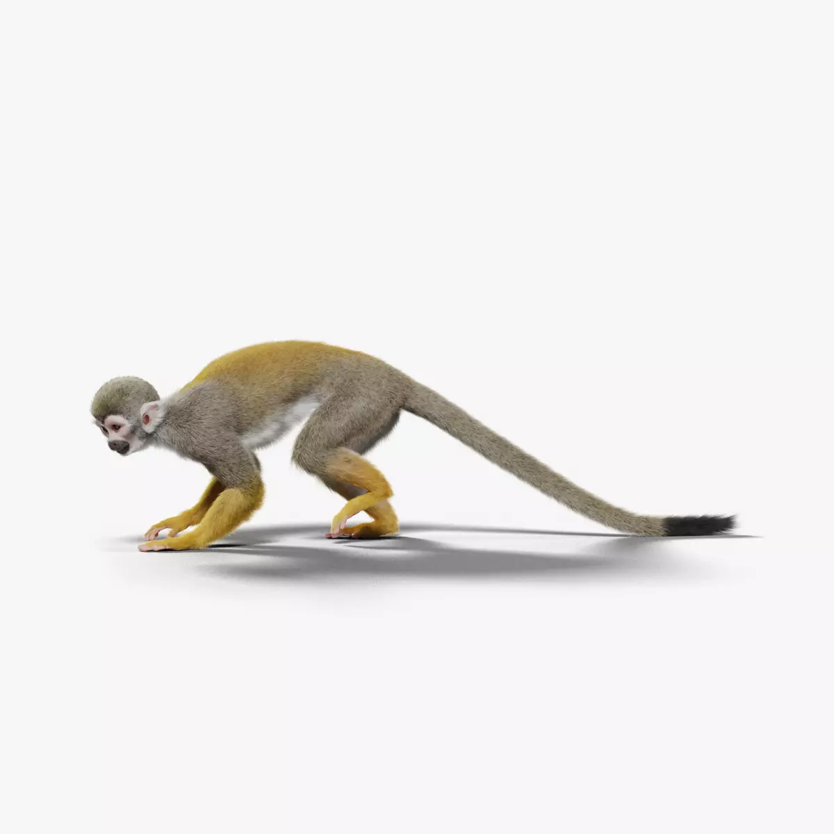 This is a realistic common squirrel monkey model with multiple 4K maps, fur, rigging and animations. This model is made with Blender and Cycles renderer.