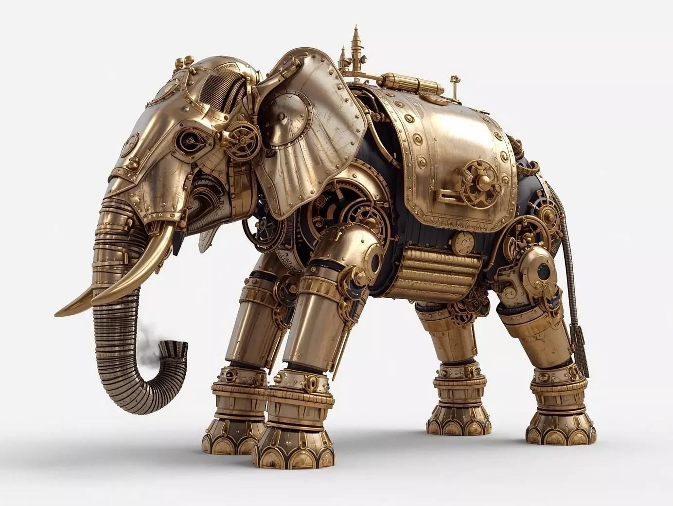 Key FeaturesDesign: Realistic Elephant form integrated with full-body Steampunk mechanical armor and piston legs.