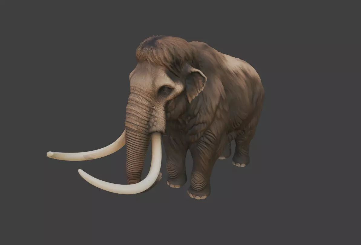 Its imposing size and iconic tusk silhouette make it perfect as a focal animal in wide landscape shots. It pairs naturally with glaciers, tundra plains, prehistoric forests, volcanic ash environments, or even mythological fantasy worlds.
