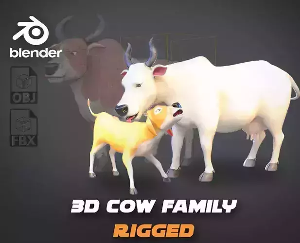 Additional Information:This Cow Family Pack is part of my stylized animal character series. Check out other characters like the elephant, lion, and cheetah on my profile. If you purchase this model, your feedback and reviews are greatly appreciated—thank you for your support!