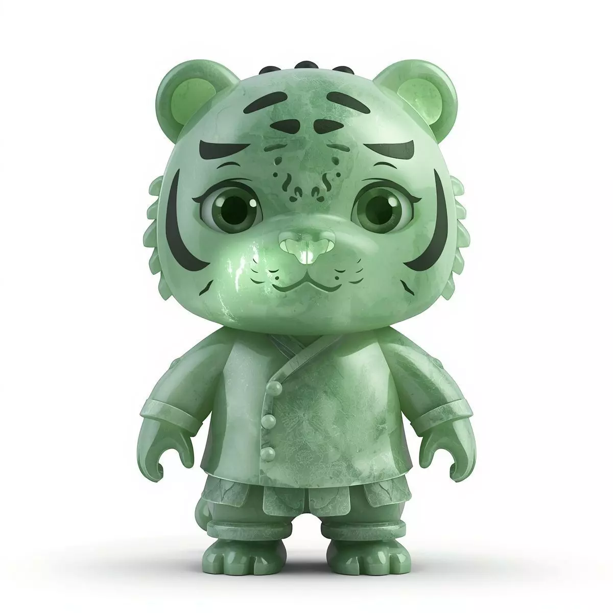 Tags3d model jade tiger stylized character game ready asset anthropomorphic tiger green jade gemstone texture carved stone oriental aesthetic high detail expressive eyes isolated character pbr materials digital collectible mythical creature