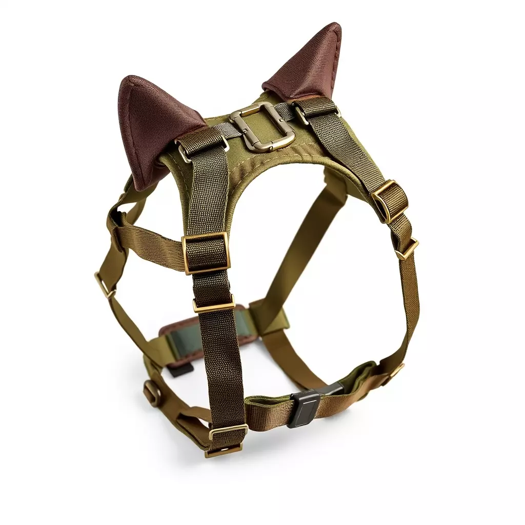 This highly detailed 3D model represents a modern tactical dog harness, perfect for various digital applications. Designed with a rugged, military-inspired aesthetic, it features durable webbing straps, robust metal buckles, and unique ear-like attachments on the top for a distinctive look, reminiscent of breeds like a German Shepherd. The model is optimized for real-time applications, making it ideal for game development, virtual reality (VR), and augmented reality (AR) experiences. Its clean topology and efficient polygon count ensure smooth performance without sacrificing visual fidelity. Additionally, it is perfectly suited for high-quality static renderings in architectural visualization, product showcases, or digital art projects. The harness comes fully UV unwrapped with a clear texture layout, ready for PBR texture application to achieve realistic material representation. It can be easily integrated into character rigs or used as an independent prop. Supported file formats include GLB, OBJ, STL, ABC, DAE, FBX, USD, and PLY, ensuring broad compatibility across different 3D software and engines. This versatile asset will enhance any scene requiring a robust and stylish pet accessory.