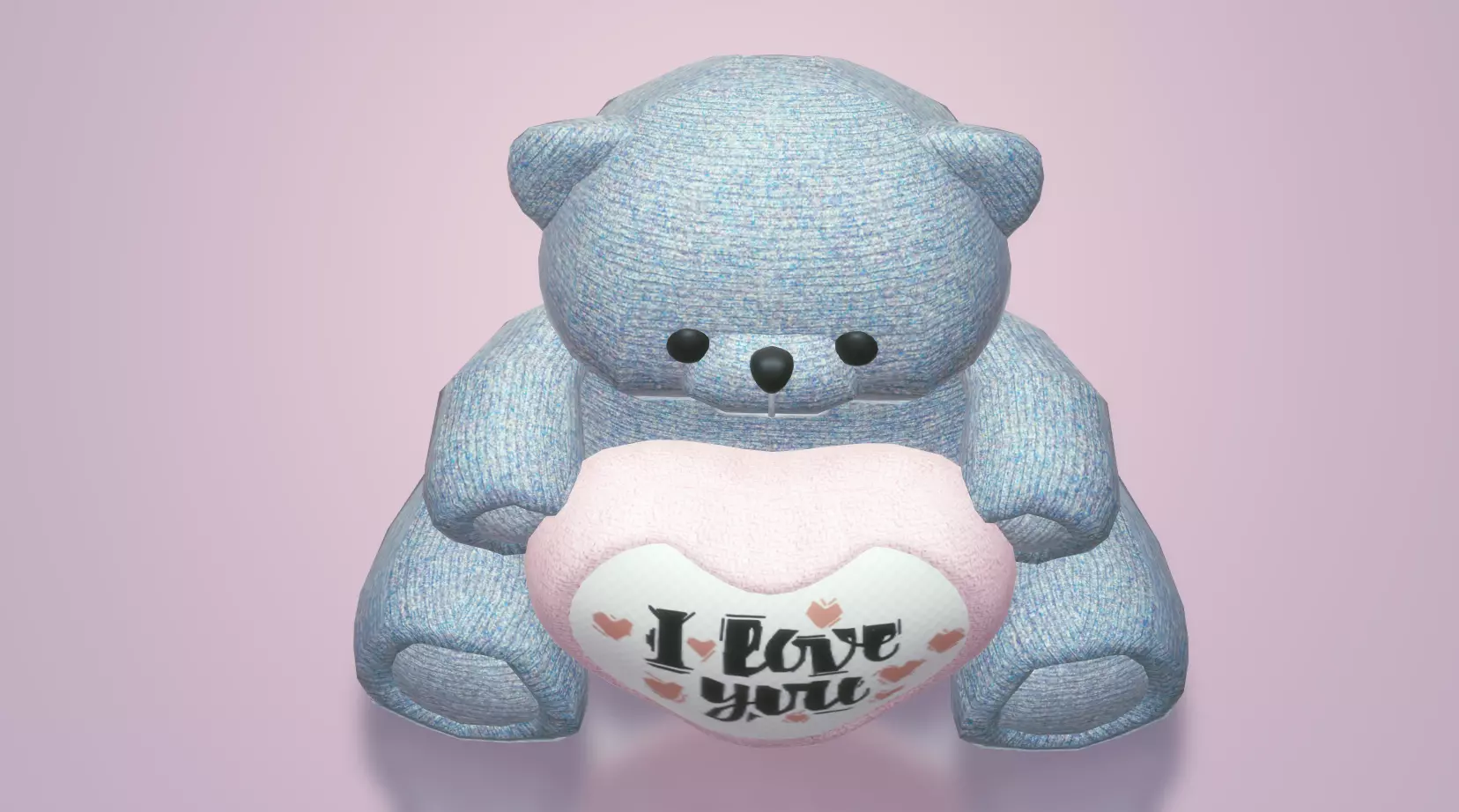 Teddy bear holds a hearth it says i love you Low-poly 3D model