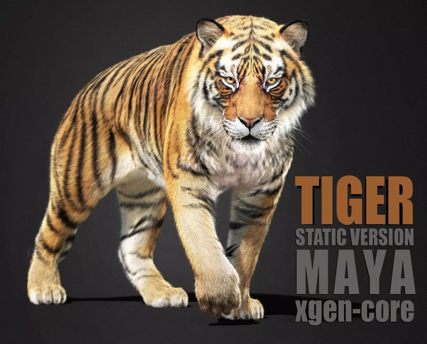 High Detailed Photorealistic Tiger, made with Maya. Xgen (CORE) for grooming.