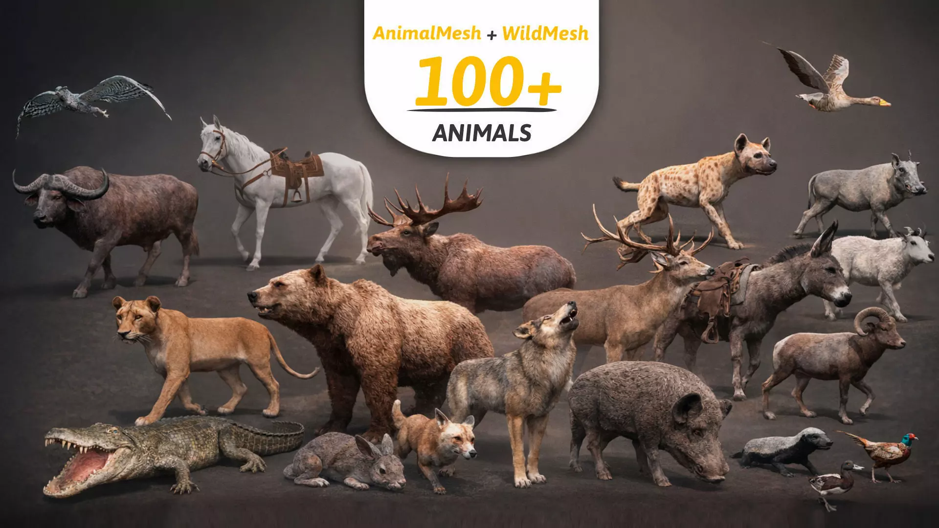 SEE THE MODELS + ANIMATIONS HERE and HERE Includes 100+ 3D animal models from AnimalMesh 3D & WildMesh 3D.